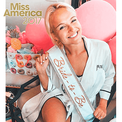 The Glamour Collection Sashes were designed in collaboration with Miss America 2017, Savvy Shields for her bridal shower and bachelorette party! These stunning bridal sashes feature gold embroidery on pure white Japanese satin fabric and white Swarovski Crystal rhinestones on the border with gold backing four rows thick! Because when you're dressing in gold bling who wants a limit on how much you can add? That's why we set out to make the brightest gold rhinestone studded bride to be sashes we possibly could for fabulous people who appreciate such a luxurious wedding accessory. Any of the Bride to Be sashes in the Glamour Collection is sure to be the hit of your next bachelorette party, bridal shower, or any other wedding related occasion!